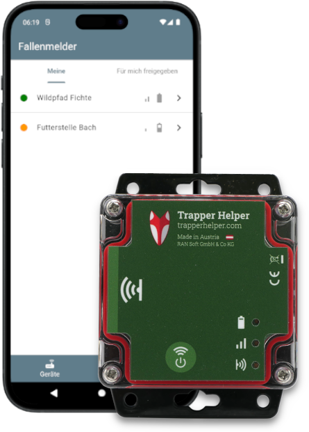 Mit dem Trapper Helper entgeht Ihnen kein Fang mehr. Dieses innovative Gerät sendet Ihnen unverzüglich eine Benachrichtigung, sobald die Falle auslöst. Dank der integrierten SIM-Karte und der beeindruckenden Batterielaufzeit von bis zu drei Jahren können Sie sich entspannt zurücklehnen und sich auf andere Aufgaben konzentrieren. Und das Beste daran: Es fallen keine laufenden Kosten an. Der Trapper Helper ist Ihr zuverlässiger Partner für eine effiziente und stressfreie Fallenüberwachung.